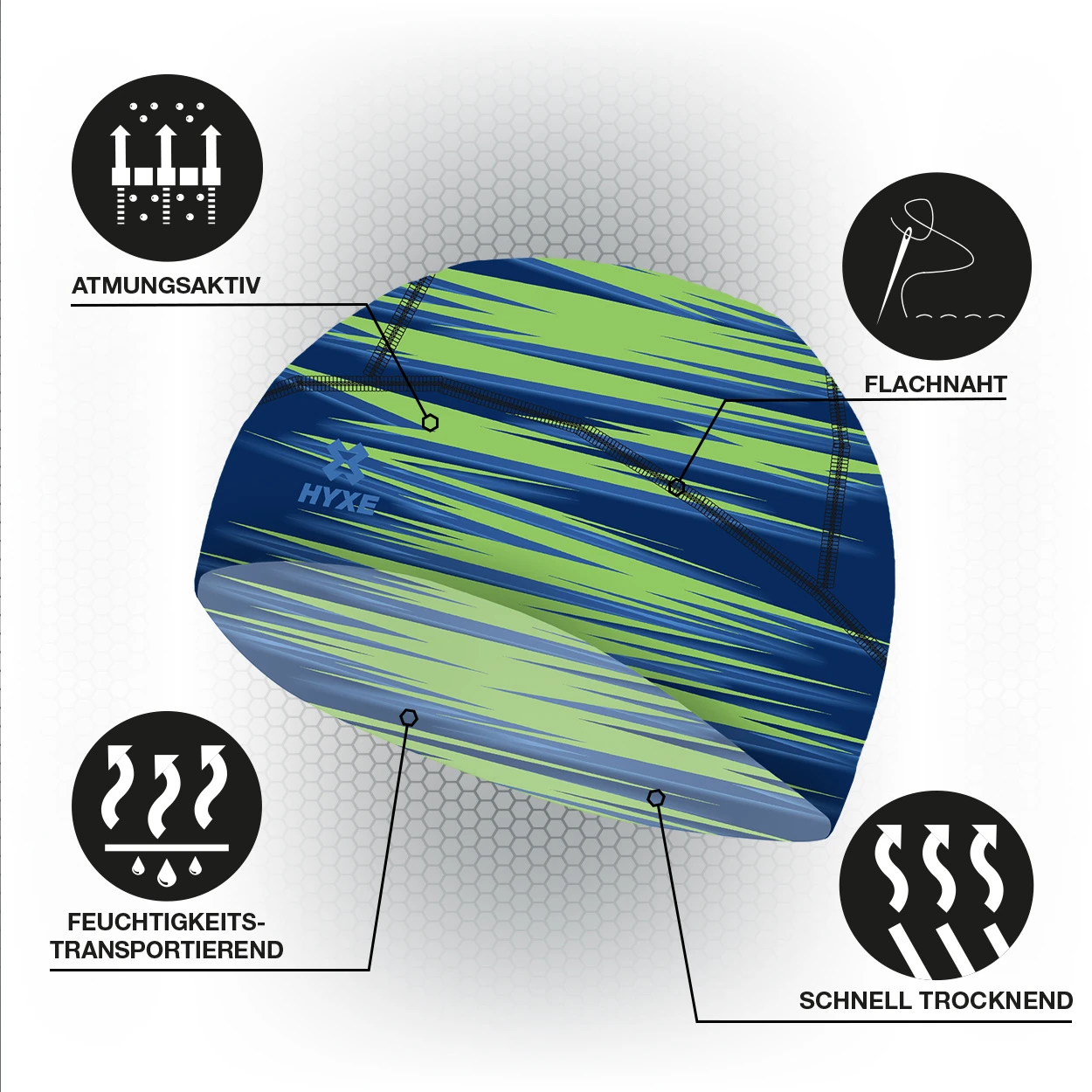 Der Hat der Marke HYXE ist zu 100% aus hochwertigem Polyester gefertigt. Diese funktionale Mütze verfügt nur über besonders wenige flache Nähte, wodurch ein angenehmeres Tragegefühl entsteht. Ebenso wird Feuchtigkeit ideal abtransportiert und die Müze ist nicht nur atmungsaktiv sondern hemmt außerdem die Geruchsbildung, weil sie antibakteriell ist. Ein weiterer großartiger Vorteil ist die schnelle Trocknung.