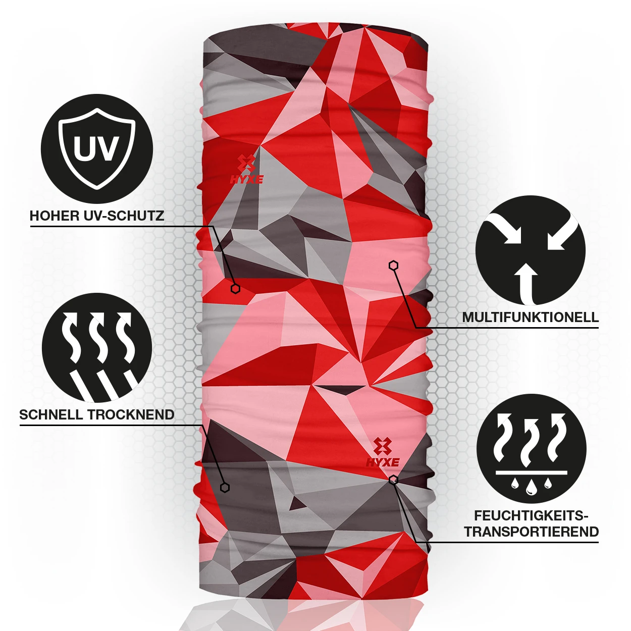 Das Hyxe Original Multifunktionstuch ist Oeko-Tex® zertifiziert und wird sowohl mit viel Liebe zum Detail als auch einem hohen Maß an Nachhaltigkeit und Qualität gefertigt. Es lässt sich aufgrund seiner vielfältigen Anwendungsmöglichkeiten problemlos zu z. B. einer Mütze, einem Stirnband oder einem Haarband umwandeln und ist somit für die verschiedensten Aktivitäten der perfekte Begleiter.