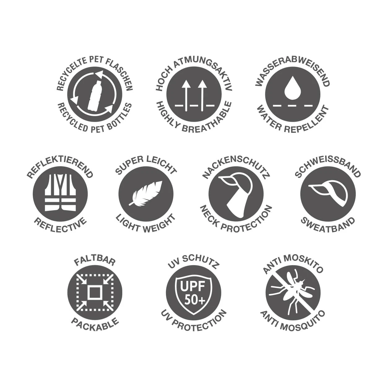 Du kannst die Cap so tragen, wie es dir gefällt: der Nackenschutz ist abnehmbar und die Größe am Verschluss individuell einstellbar. Außerdem versorgen dich die Belüftungslöcher mit erfrischender Luft am Kopf. Das recycelte PET Material ist wasserabweisend, sehr weich und superleicht. Zusätzlich besticht die Cap durch ihr zeitloses Design, dem reflektierenden P.A.C. und satten Farben. So wird jeder Angel-, Camping- oder Wanderausflug zum Erfolg!
