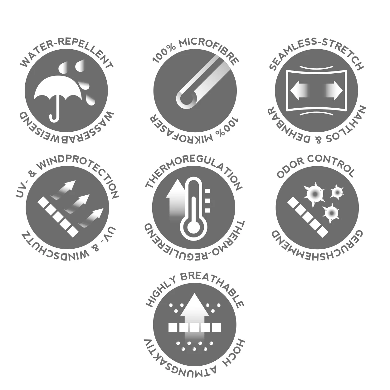 Die Atmungsaktivität und die Dehnbarkeit sind zwei weitere positive Eigenschaften, die zu einem verbesserten Tragekomfort beitragen. Das H²O ist ebenfalls mit einem UV- sowie Windschutz ausgestattet um Sie bei unterschiedlichen Wetterverhältnissen gut zu schützen. Da Feuchtigkeit optimal nach außen abtransportiert wird, ist es auch thermoregulierend. Es entspricht ebenfalls dem OEKO-TEX® Standard 100.