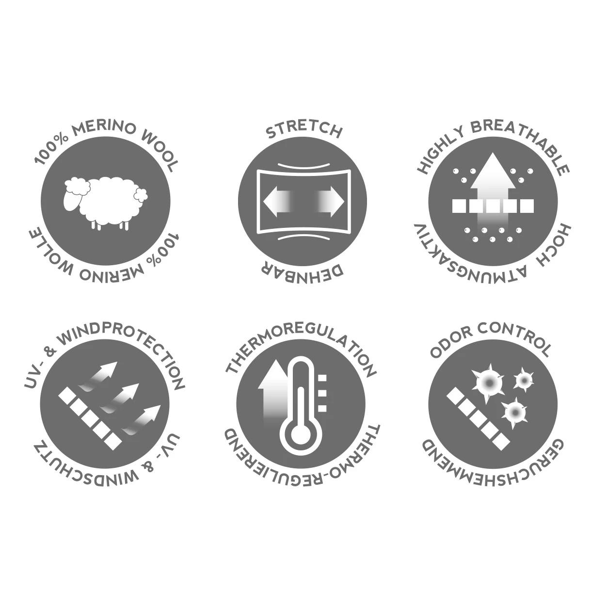 Durch ihre natürliche antibakterielle Eigenschaft ist sie geruchshemmend. Das Tuch verfügt auch über eine hohe Atmungsaktivität und einen UV- sowie Windschutz. PAC Merino verwendet ausschließlich Merinowolle frei von Mulesing. Es entspricht ebenfalls dem OEKO-TEX® Standard 100.